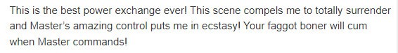 For this kind of guy, we’ll call him a faggot slave, which seems appropriate, the idea of a powerful man going into his mind, with hypnosis, and putting things in there that he can’t even remember, which will do things to him, and cause him to do things; is just so incredibly exciting he can’t get enough of it.
